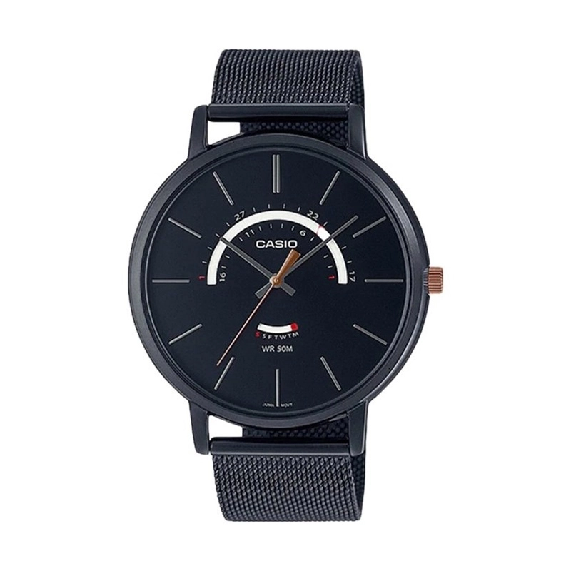 این اضافات جدید به مجموعه مدل ه ای مینیمالیستی آنالوگ استاندارد محبوب است. یک چهره ساده و تمیز با یک پنجره تاریخ شکافی که از ساعت 3 تا 9 بعد از ظهر است، و یک پنجره روز شکافی که از ساعت 5 تا 7 است، جبران می شود. قرمزی دستها و نشانهه ای نمایشگر این مدل، لهجهه ای جذابی را به طرحه ای مینیمالیستی ارائه میدهد. مقاومت 50 متری در برابر آب، حفاظت زیادی را برای استفاده روزمره، چه در محل کار و چه در بازی، فراهم می کند. MTP-B105D با یک نوار استاندارد فولاد ضد زنگ عرضه می شود.