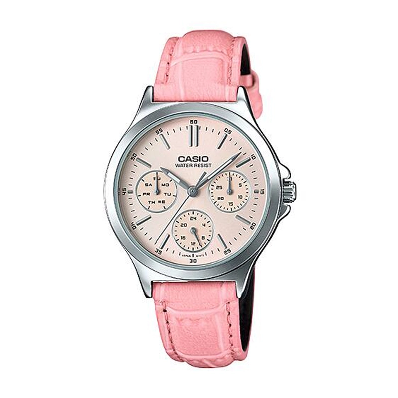 یک ساعت مچی زنانه کلاسیک میتواند در استایل های روزانه شما همراهتان باشد. این مدل ساعت کاسیو که در رده کلاسیک قرار می گیرد برای استایل های کژوال مناسب است. این ساعت مچی در برابر مرطوب شدن و پاشیدن آب روی آن مقاوم است اما برای شنا کردن گزینه مناسبی نیست. بر روی صفحه این ساعت سه نشانگر تاریخ، روز و 24 ساعته وجود دارد.